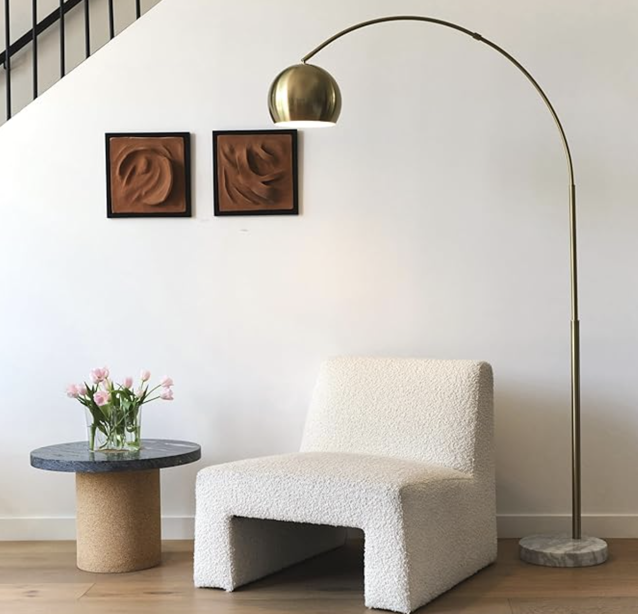 Refined materials and a retro arched shape give this decorative floor lamp a modern feel with mid-century flair. Perfect for evening mood lighting.