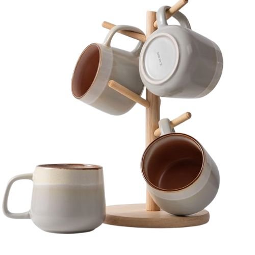 Stoneware Coffee Cups with Comfortable Handle for Latte, Tea, Cappuccino, Cocoa