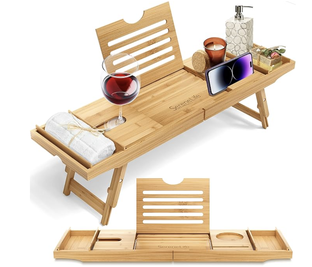 Indulge in a truly elevated experience. This sophisticated bathtub tray seamlessly transforms into a stylish breakfast-in-bed or laptop tray. With foldable legs for effortless versatility, it's perfect for luxurious soaks or leisurely mornings.