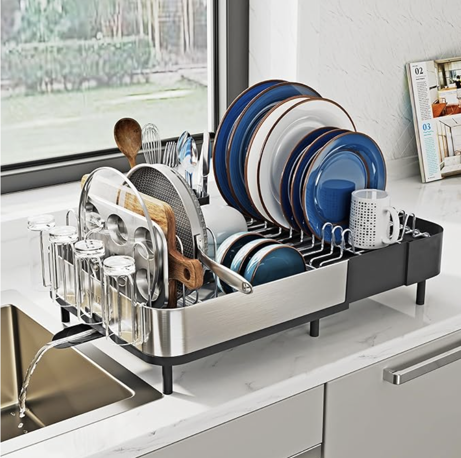 This dish drainer features a built-in spout that directs water straight into the sink. Its elevated design helps prevent water buildup, keeping your kitchen dry and mess-free.